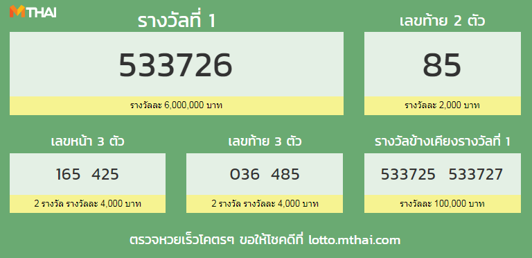 533726 เลขทาย 2 ตว. ตรวจหวย งวด 1 พฤศจกายน 2562 ลาสด. ผลสลากงวดวนท 1 พฤศจกายน 2560.